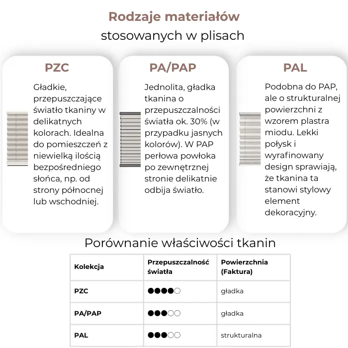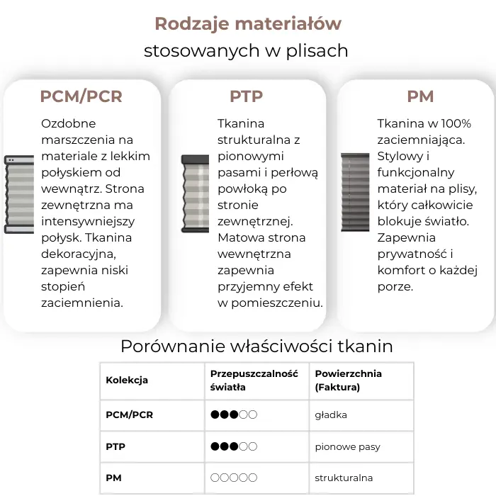 ✔ PCM / PCR – tkaniny ozdobne, większa przepuszczalność światła