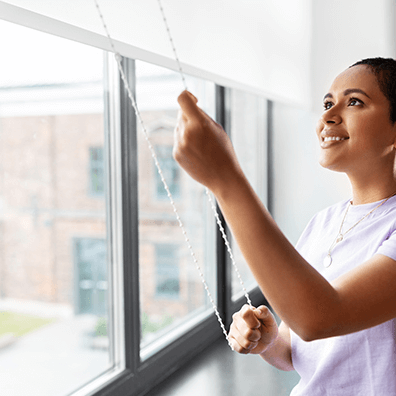 Tkaniny 100% zaciemniające skutecznie blokują światło, ale ostateczny efekt zaciemnienia wnętrza zależy od typu rolety i jej montażu – np. obecności prowadnic czy kasety.
